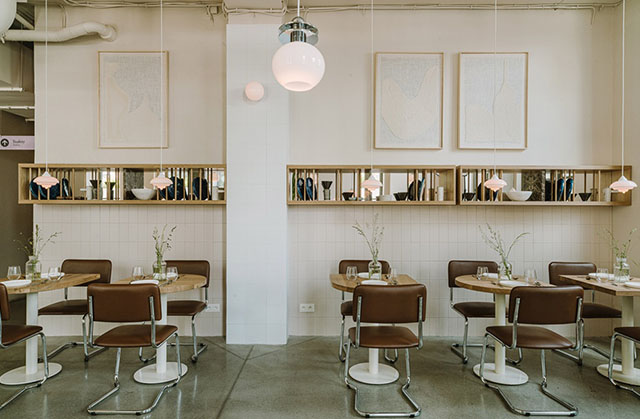 在餐厅无码人妻精品一区二区蜜桃网站文前就考虑到为了像特拉维夫的浅色包豪斯建筑致敬,整个80平方米的餐厅的几面墙都覆盖着简单的白色瓷砖。其它一些表面则被涂成浅米色,而白色的窗帘则作为团体用餐区的背景。