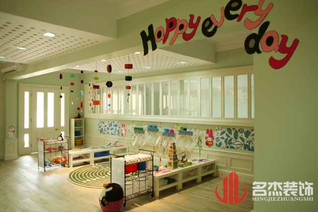 设计说明:此次室内设计以温馨、柔和为主题,在综合活动区采用灵动的色彩,引入了大自然的色彩,让孩子们感受大自然的气息,勾起孩子们认识大自然的渴望,并给予了孩子们想象的空间。每个教室主要运用绿色的格调,营造一个健康和谐的气氛。 在安全方面,严格根据幼儿园设计的规范标准来设计,空气流通、日照充足、排水通畅。总平面布置功能分区明确,布局合理,按照保育、教育、游戏活动、生活等不同功能进行分区,方便使用管理,避免相互干扰,有利交通疏散。